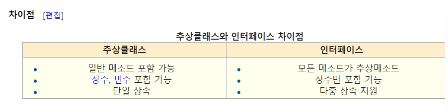 *추상클래스와 인터페이스의 차이점
