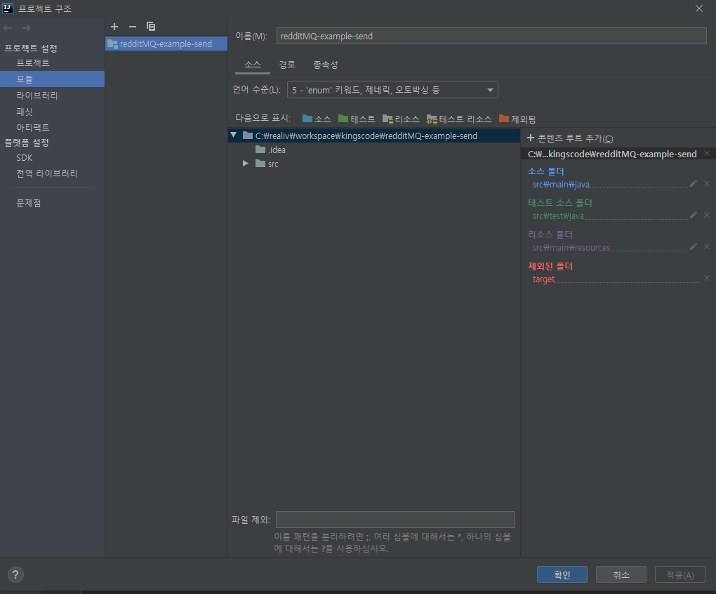 프로젝트 디폴트값으로 바꿔주었더니 정상으로 돌아옴